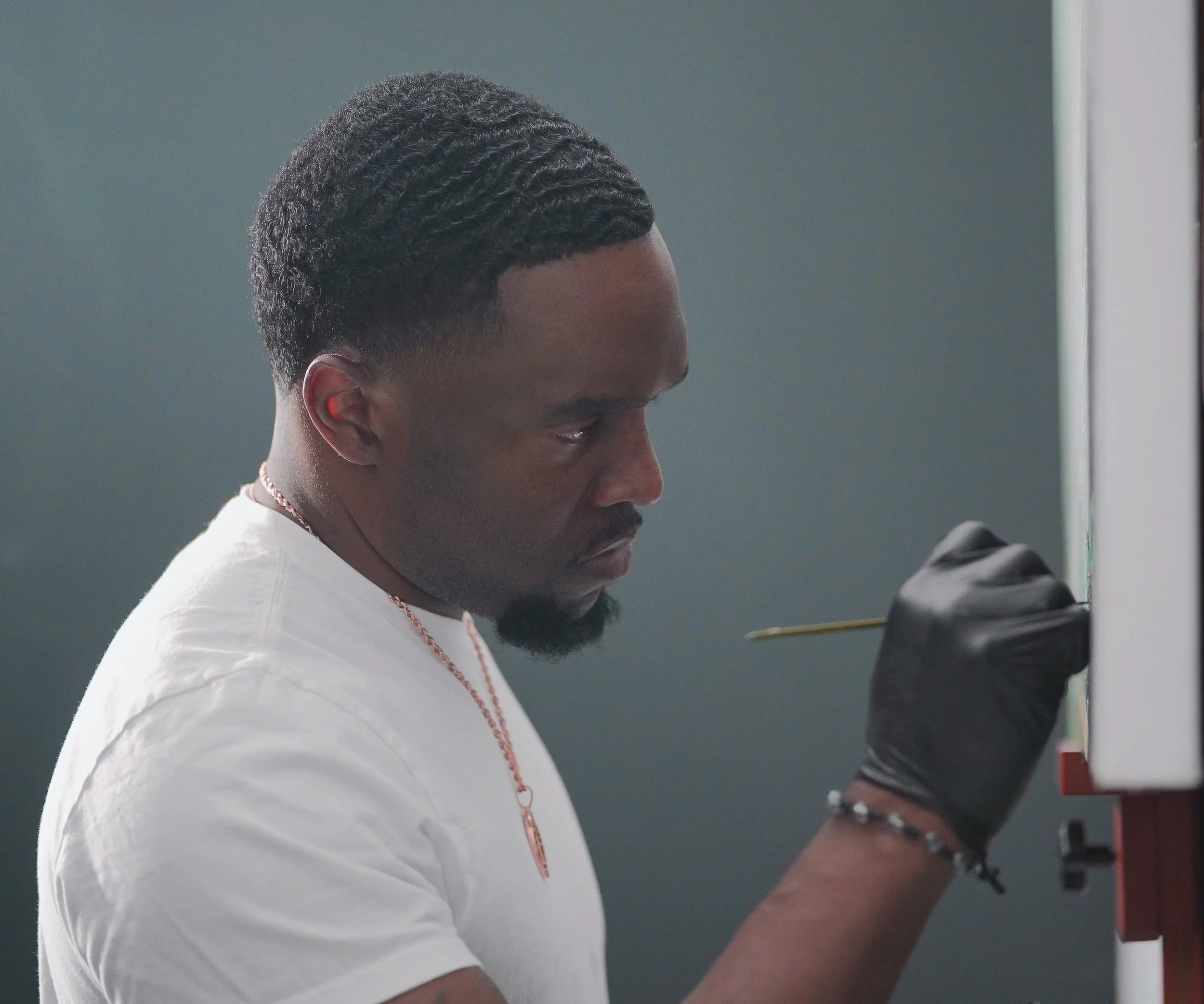My early black-and-white work focused on capturing real emotion through light and shadow. As my practice evolved, I embraced oil and acrylic, allowing color to deepen the stories in my work. Today, I create pieces that blend hyperrealistic precision with rich, cinematic narratives rooted in love, memory, and lived experiences.
